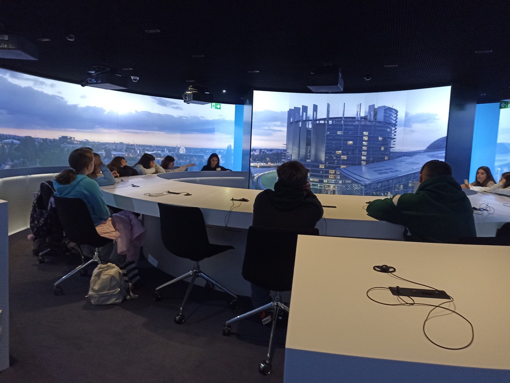 Am Mittwochen, den 06.11.2024 war um 08:00Uhr morgens Abfahrt zum House of European History. Dort angekommen mussten wir zuerst alle durch eine Sicherheitskontrolle wie am Flughafen gehen. Anschließend bekamen alle ein Tablet mit Kopfhörern für den Rundgang im Museum. Jede Etage behandelte eine eigene Epoche in der Geschichte Europas. In einem Heft „12 Schritte zur Einigung Europas“ sammelten wir Informationen und beantworteten Fragen. Um 13:30 gingen wir dann ins Parlament. Es gab wieder Sicherheitskontrollen und jeder musste am Eingang seinen Personalausweis abgeben. Dieser wurde gescannt und es wurde automatisch ein Besucher-Namensschild ausgedruckt. Angekommen in der ersten Etage hatten wir einen Gesprächstermin mit der Parlamentarierin Vivien Constanzo, die sich aus terminlichen Gründen anstatt Frau Katarina Barley aus Schweich, mit uns unterhielt. Wir durften ihre alle möglichen Fragen stellen und haben viel über Berufsleben erfahren.
