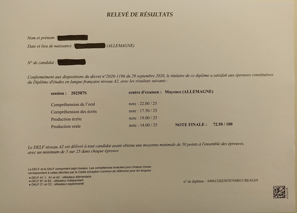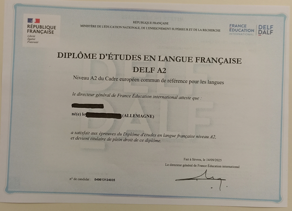 Seit dem vergangen Schuljahr bieten wir das DELF intégré an. Beim DELF handelt es sich um eine Sprachprüfung des französischen Staates, welches die Sprachkenntnisse in der französischen Sprache auf den Niveaustufen des europäischen Referenzrahmen für Sprachen bestätigt. Unsere Französischlerner nehmen nun integriert in den Unterricht der zehnten Klasse am schriftlichen Teil dieser Prüfung teil. Der mündliche Teil kann dann freiwillig absolviert werden, um das Sprachdiplom erhalten zu können. Sämtliche Prüfungsteile können somit seit letztem Jahr an unserer Schule abgelegt werden. Zu Beginn der Woche haben uns nun die ersten Diplome aus dem ersten Jahr des DELF intégré erreicht. Wir gratulieren den erfolgreichen (mittlerweile) Ehemaligen!